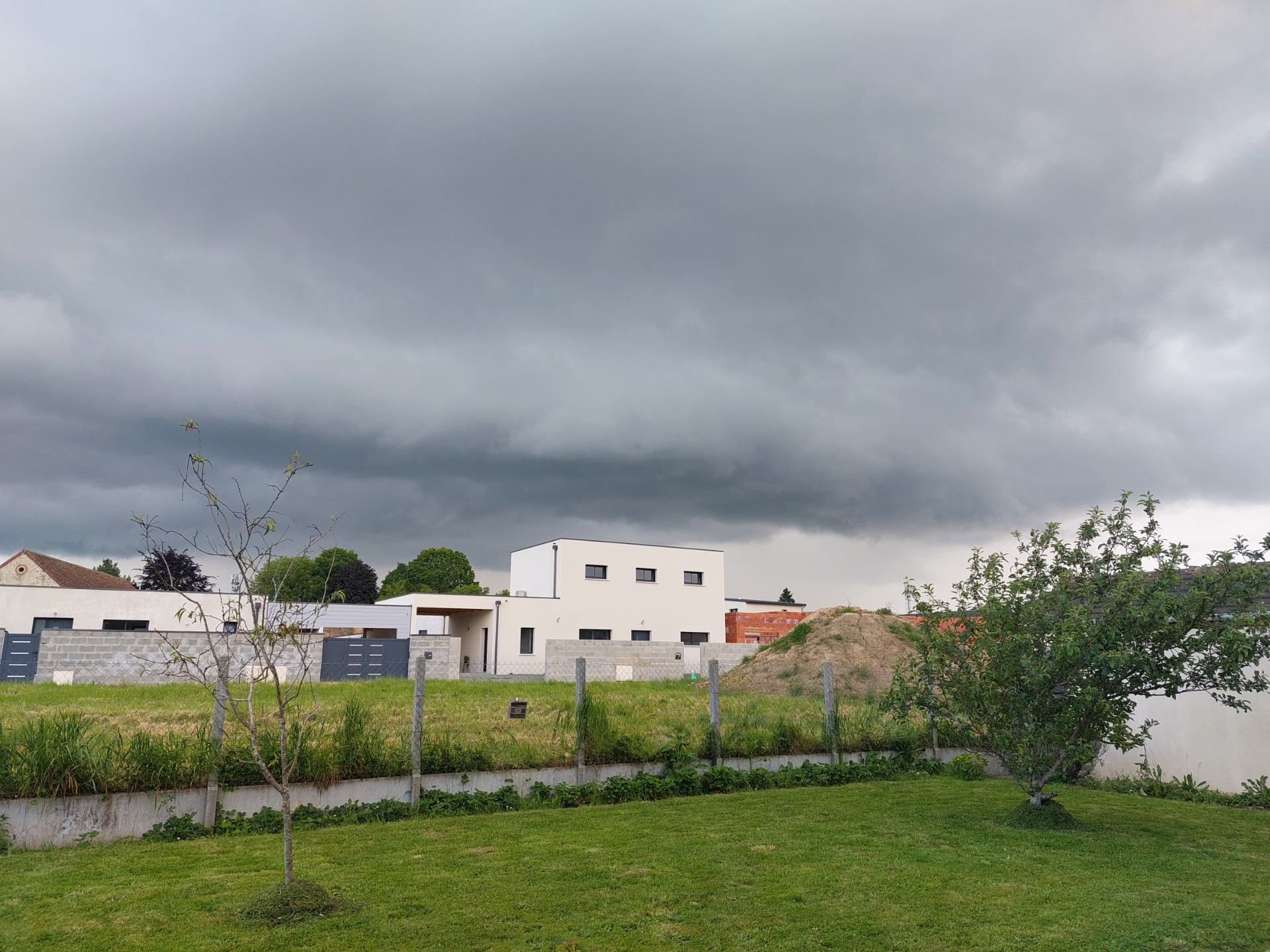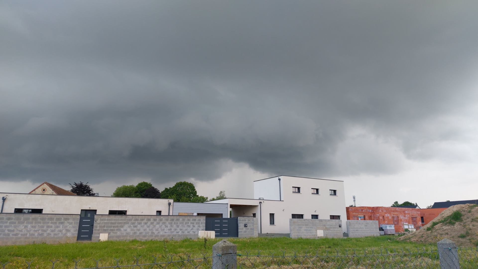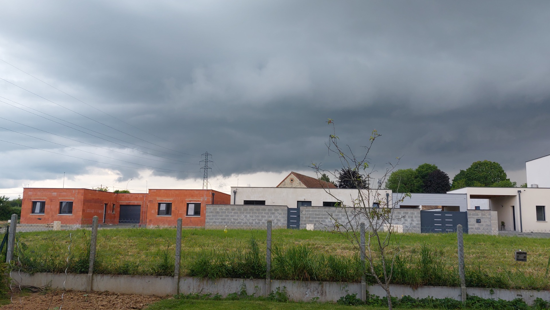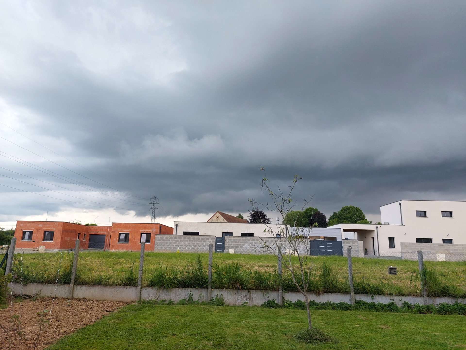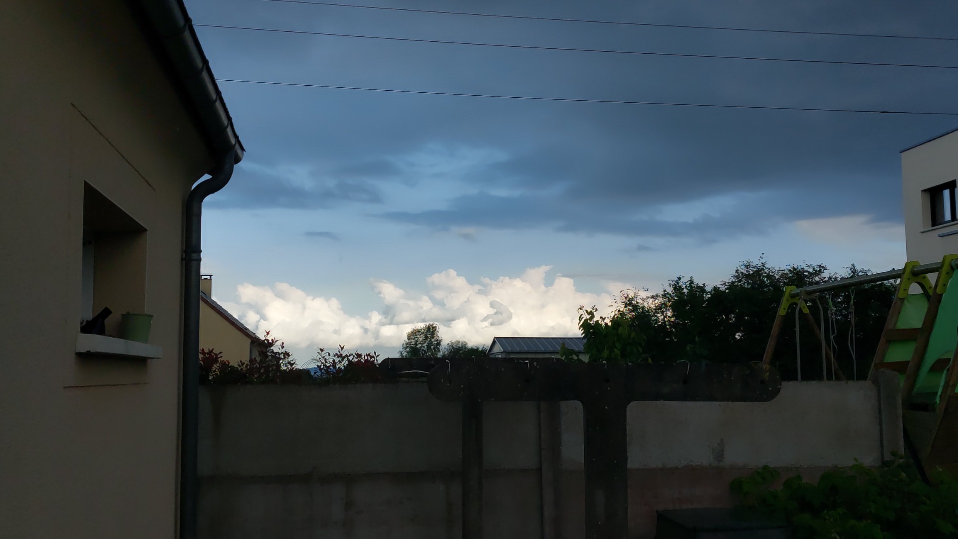 sur cette première photo, on distingue un beau rideau de pluie sur la droite de l'image, et une base aux niveau du pylône électrique. Ce que je ne savais pas, c'est que ma soirée serait animée.